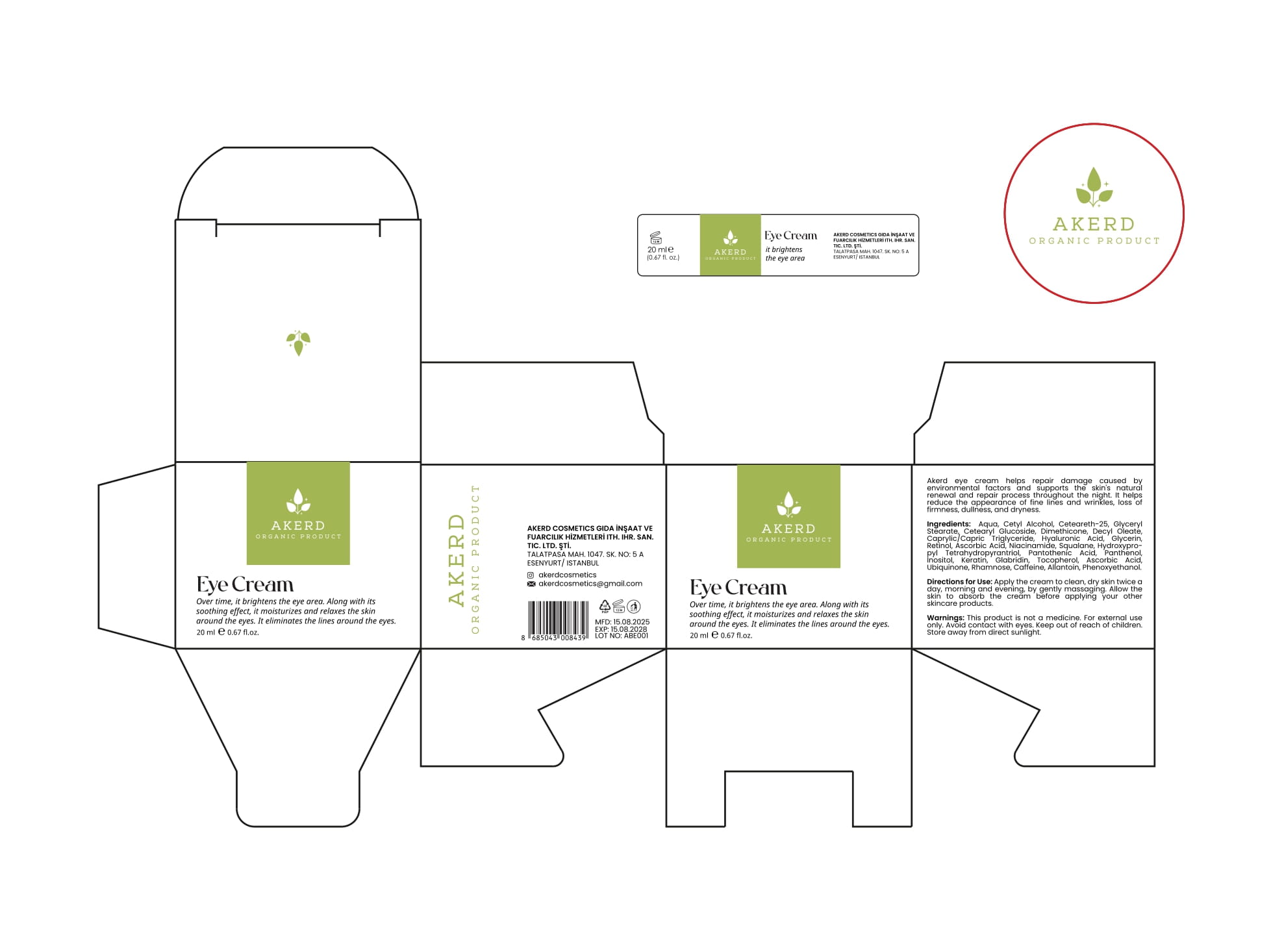 AKERD COSMETİCS Göz Kremi Aydınlatma Besleme Nemlendirici ve Canlandırıcı Kırışıklık Yaşlanmaya Karş